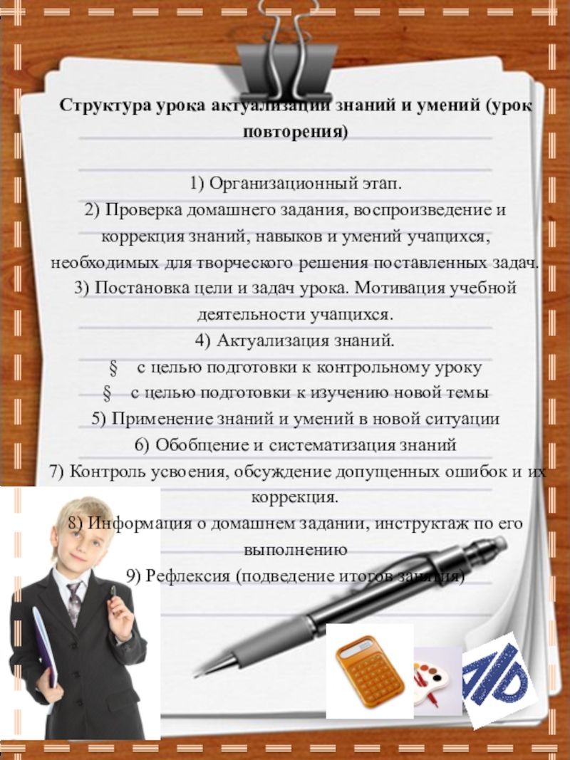 Слайд 11Структура урока актуализации знаний и умений (урок повторения)