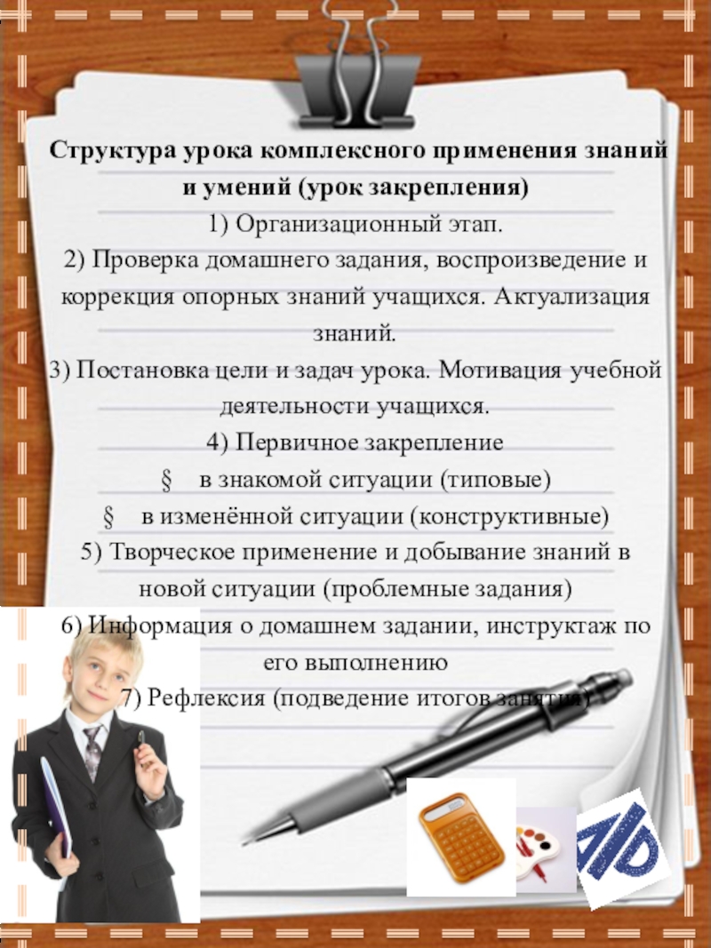 Слайд 10Структура урока комплексного применения знаний и умений (урок закрепления)