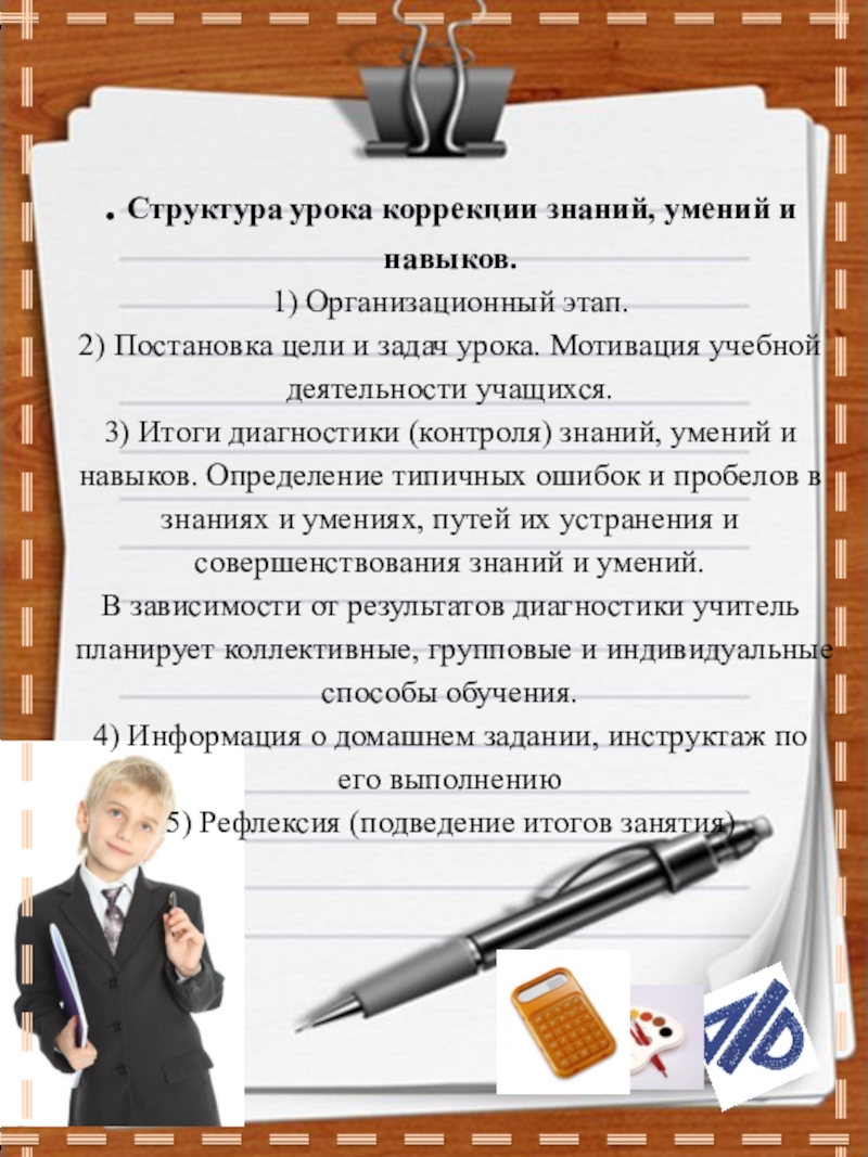 Слайд 14. Структура урока коррекции знаний, умений и навыков.