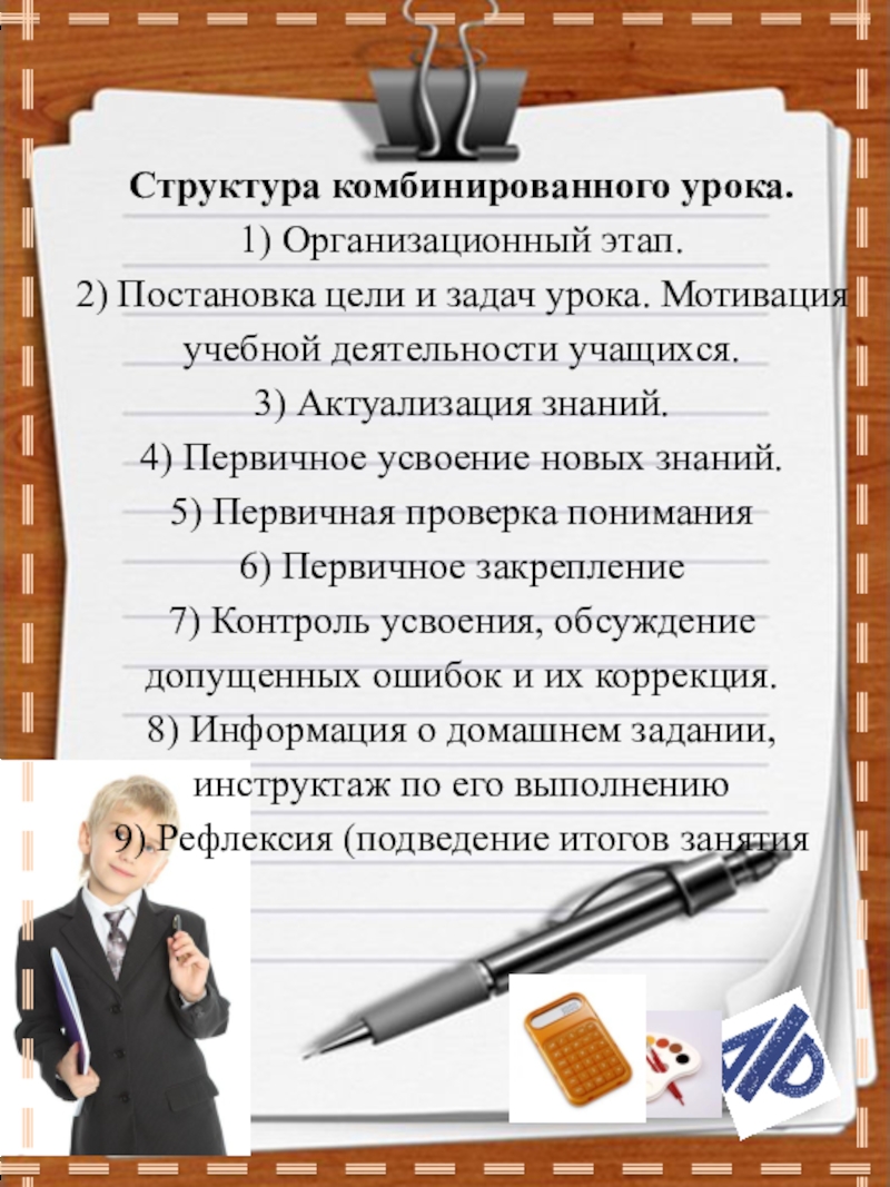Слайд 15Структура комбинированного урока.