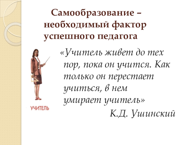 «Учитель живет до тех пор, пока он учится. Как только он перестает учиться, в нем умирает учитель»