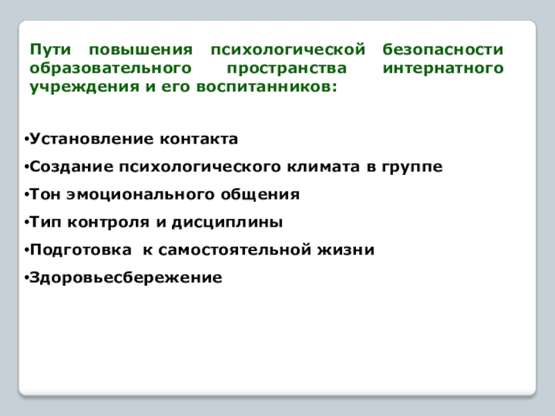 Слайд 12Пути повышения психологической безопасности образовательного пространства интернатного учреждения и его воспитанников: