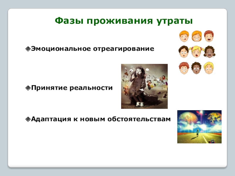 Психологическая реакция на травму включает в себя три относительно самостоятельные фазы, что позволяет охарактеризовать ее как развернутый во времени процесс ( шок, воздействие, нормального реагирования)