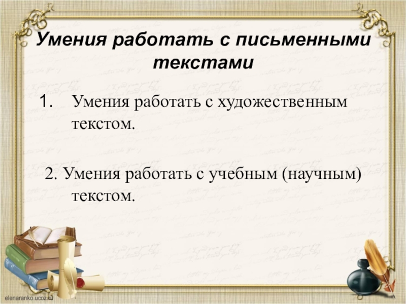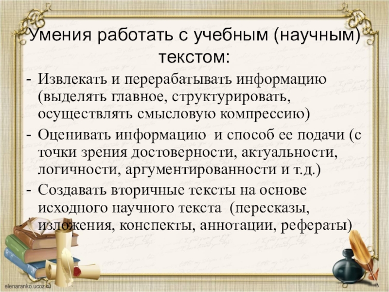 свободная ориентация и восприятие текстов художественного, научного, публицистического и официально-делового стилей;