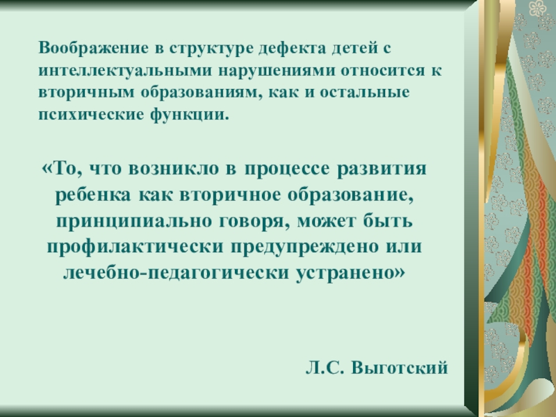 «То, что возникло в процессе развития ребенка как вторичное образование, принципиально говоря, может быть профилактически предупреждено или лечебно-педагогически устранено»
