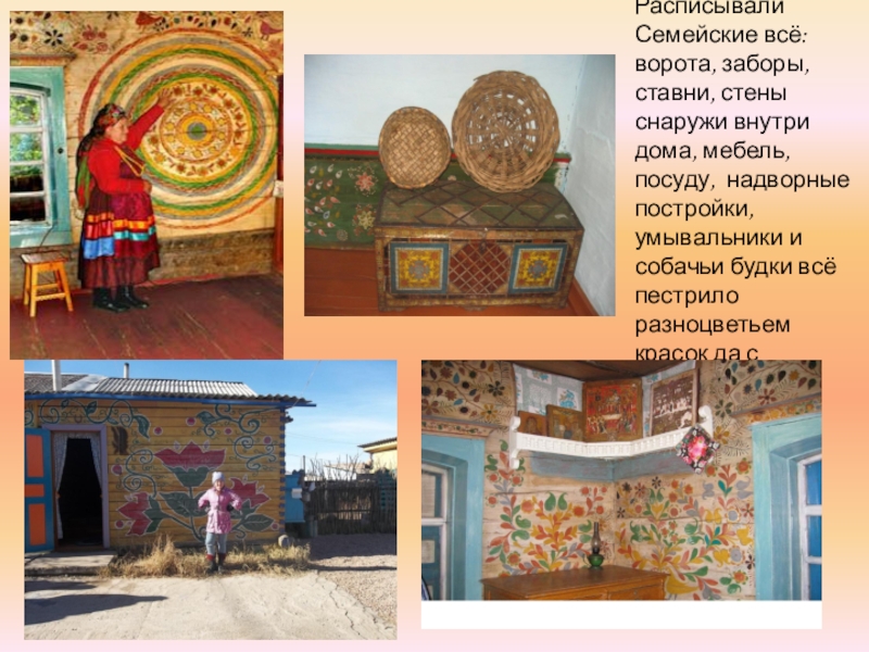 Слайд 17Расписывали Семейские всё: ворота, заборы, ставни, стены снаружи внутри дома, мебель,
