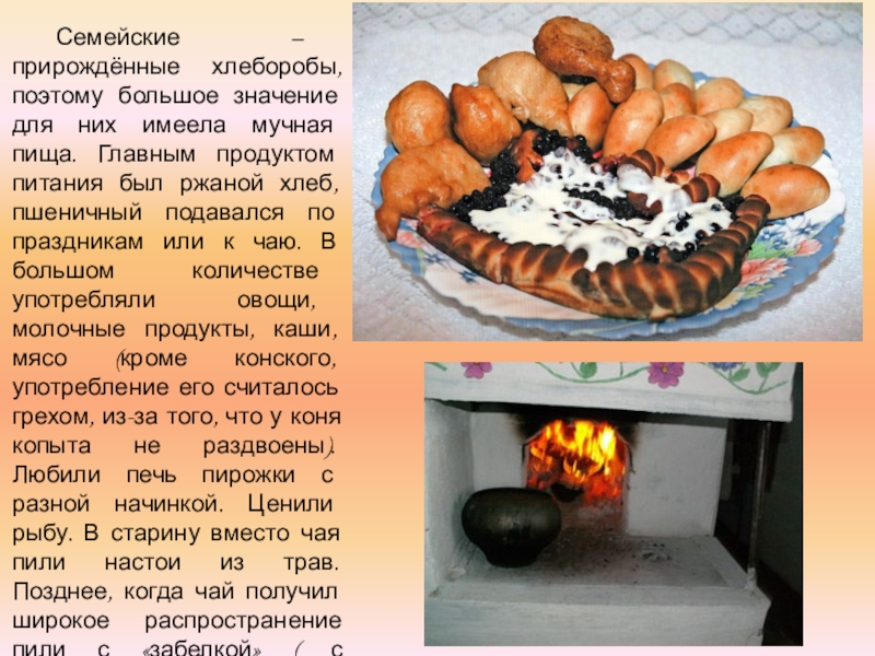 Слайд 21 Семейские – прирождённые хлеборобы, поэтому большое значение для них имеела мучная