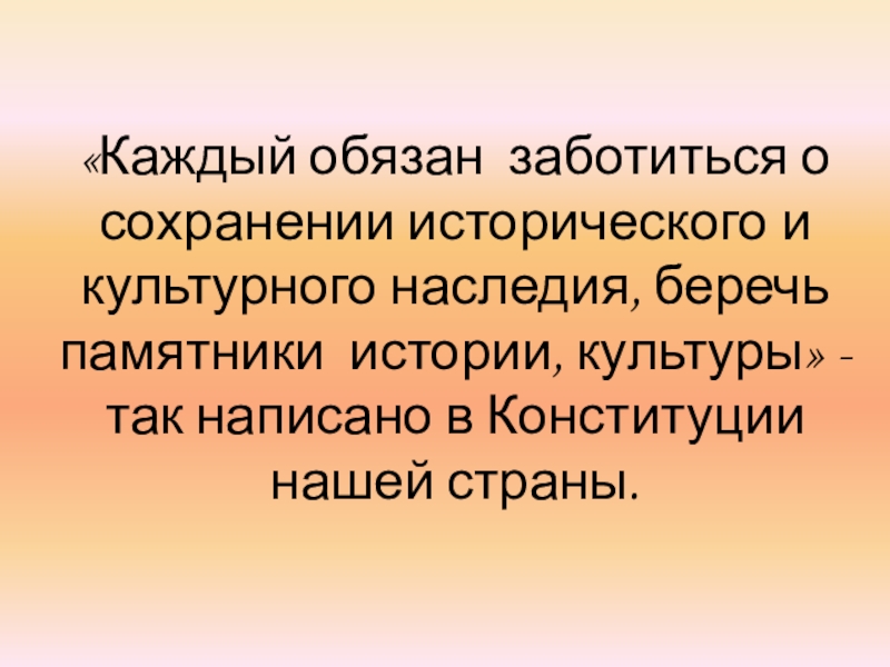 Слайд 3«Каждый обязан заботиться о сохранении исторического и культурного наследия, беречь памятники