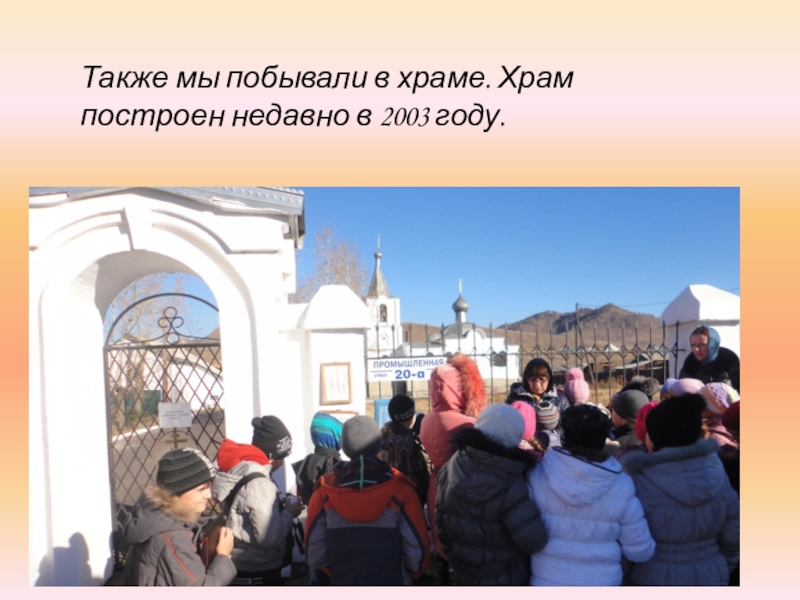 Слайд 27Также мы побывали в храме. Храм построен недавно в 2003 году.