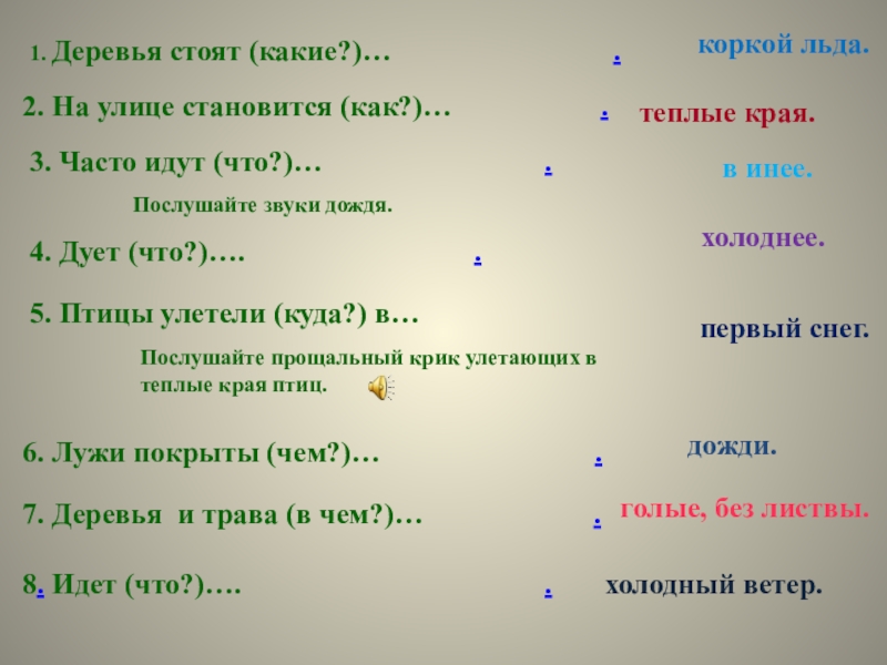 Послушайте прощальный крик улетающих в теплые края птиц.