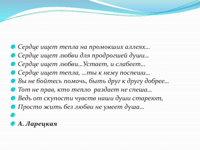 Вы не бойтесь любить, и быть в чувствах щедрее…