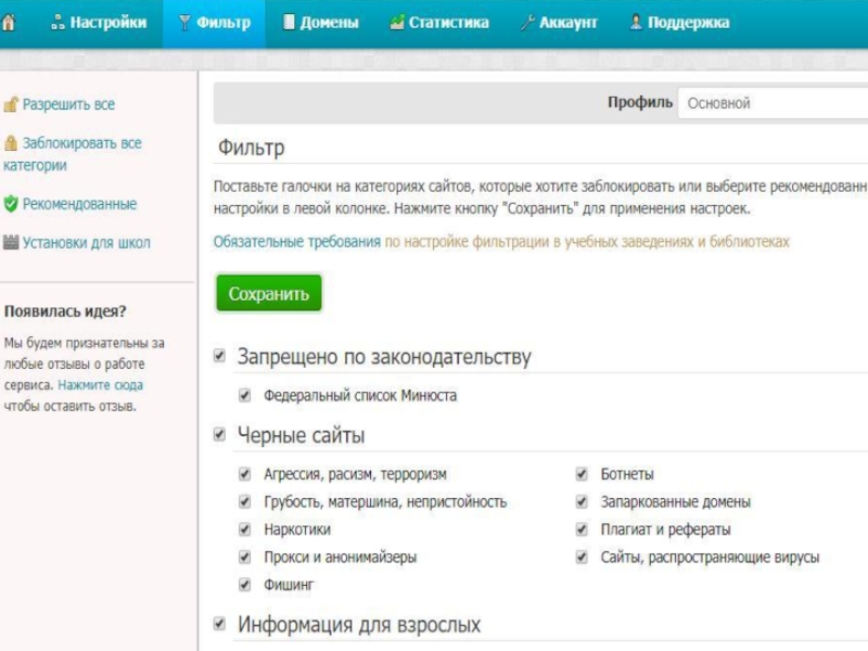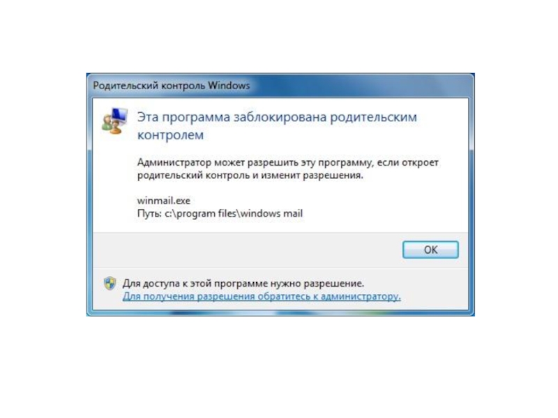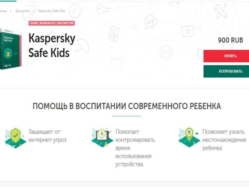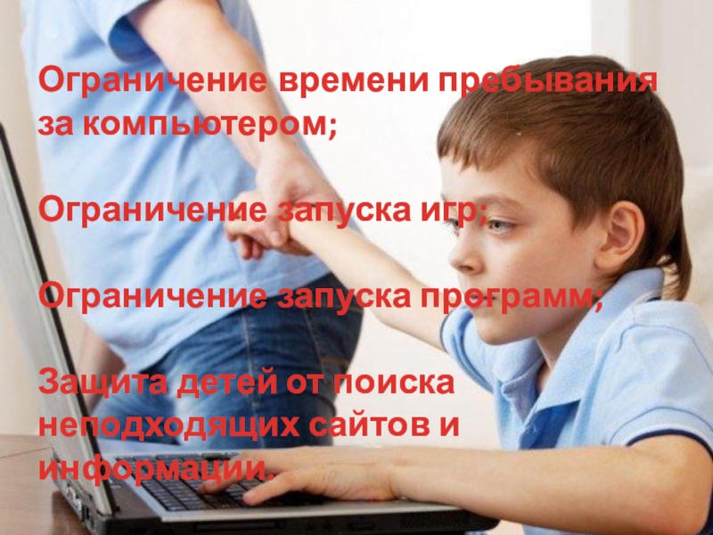 Ограничение времени пребывания за компьютером; Ограничение запуска игр;Ограничение запуска программ;Защита детей от поиска неподходящих сайтов и информации.
