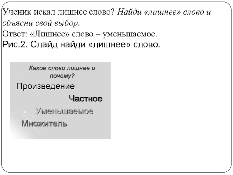 Слайд 17Ученик искал лишнее слово? Найди «лишнее» слово и объясни свой выбор.