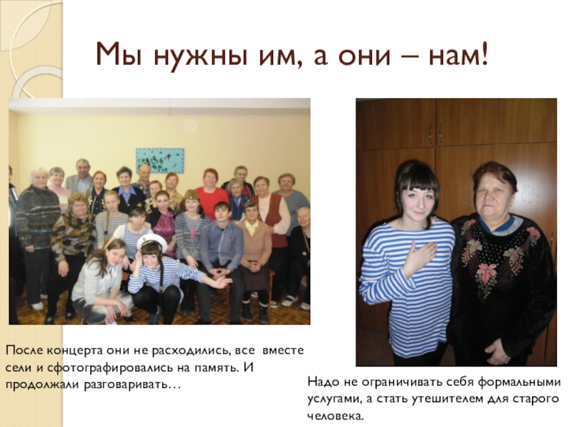 Надо не ограничивать себя формальными услугами, а стать утешителем для старого человека.