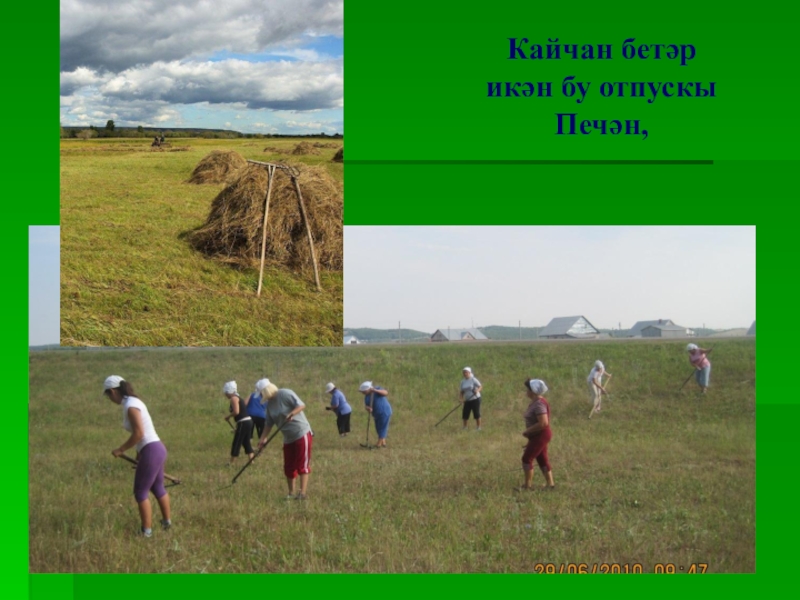 Слайд 17Кайчан бетәр икән бу отпускы Печән,