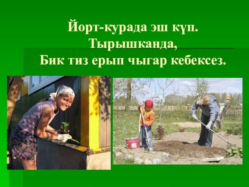 Слайд 6Йорт-курада эш күп. Тырышканда, Бик тиз ерып чыгар кебексез.