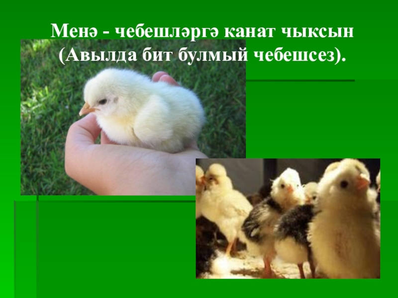 Слайд 7Менә - чебешләргә канат чыксын (Авылда бит булмый чебешсез).