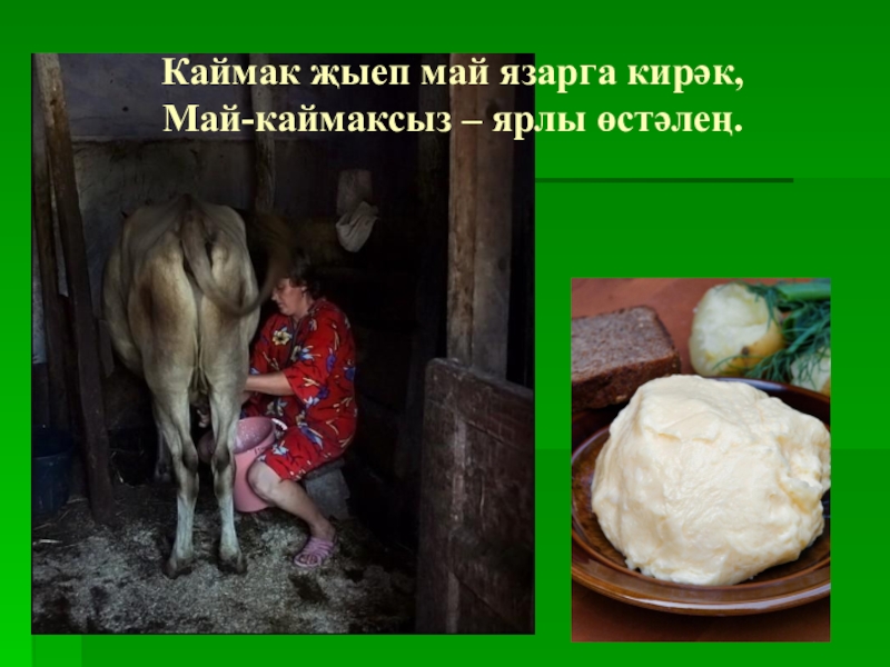 Слайд 8Каймак җыеп май язарга кирәк, Май-каймаксыз – ярлы өстәлең.