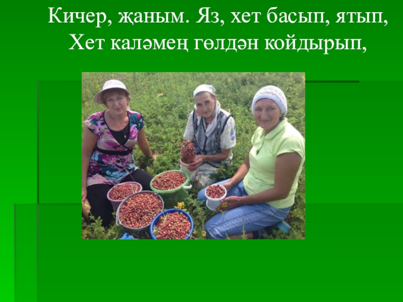 Слайд 15(Ник бу җәйләр болай озын икән? Китми икән нигә кадалып?)