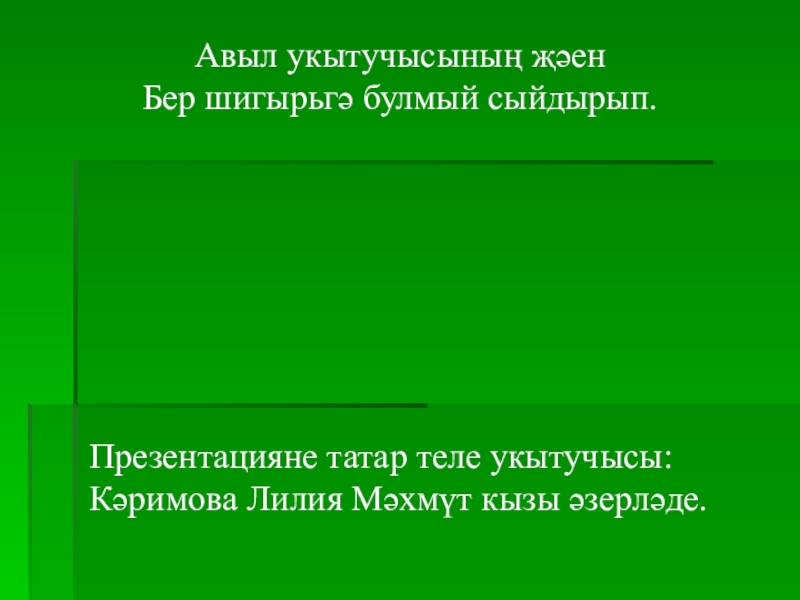 Авыл укытучысының җәен Бер шигырьгә булмый сыйдырып.  Презентацияне татар теле укытучысы: Кәримова Лилия Мәхмүт кызы әзерләде.