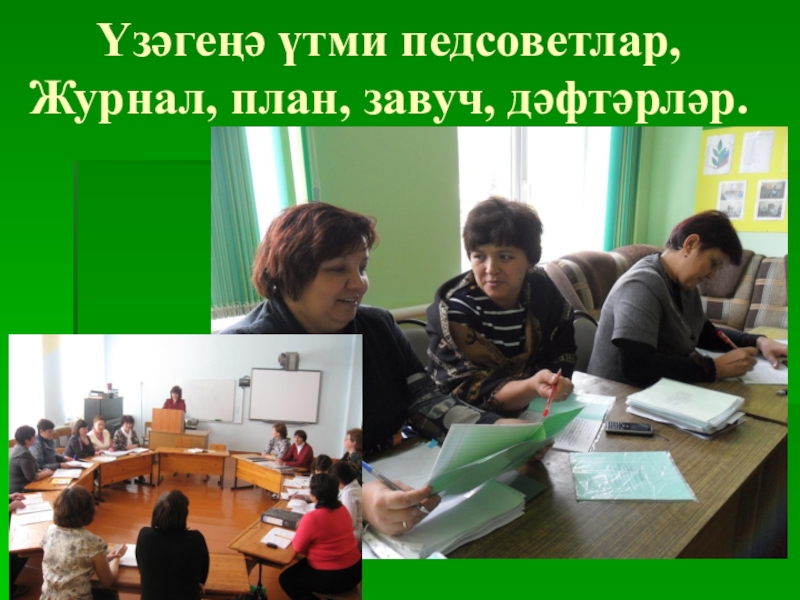 Слайд 3Үзәгеңә үтми педсоветлар, Журнал, план, завуч, дәфтәрләр.