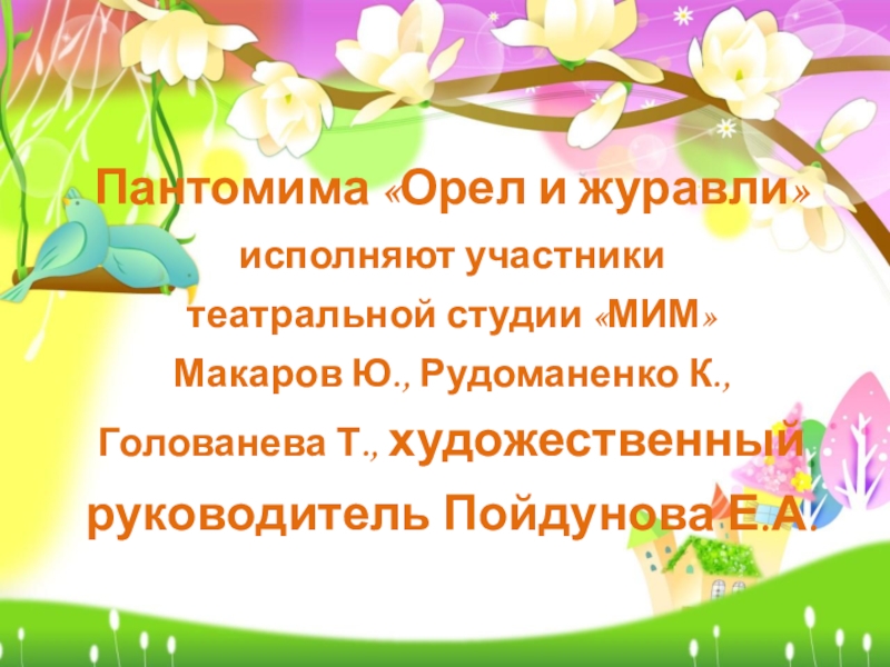 Слайд 5Пантомима «Орел и журавли» исполняют участники