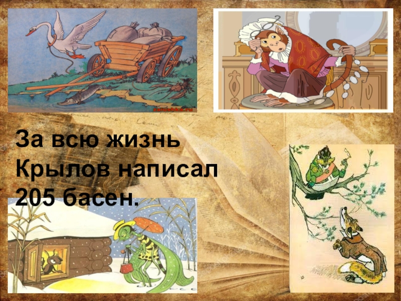 Слайд 4За всю жизнь Крылов написал 205 басен.