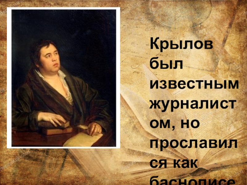 Слайд 3Крылов был известным журналистом, но прославился как баснописец.