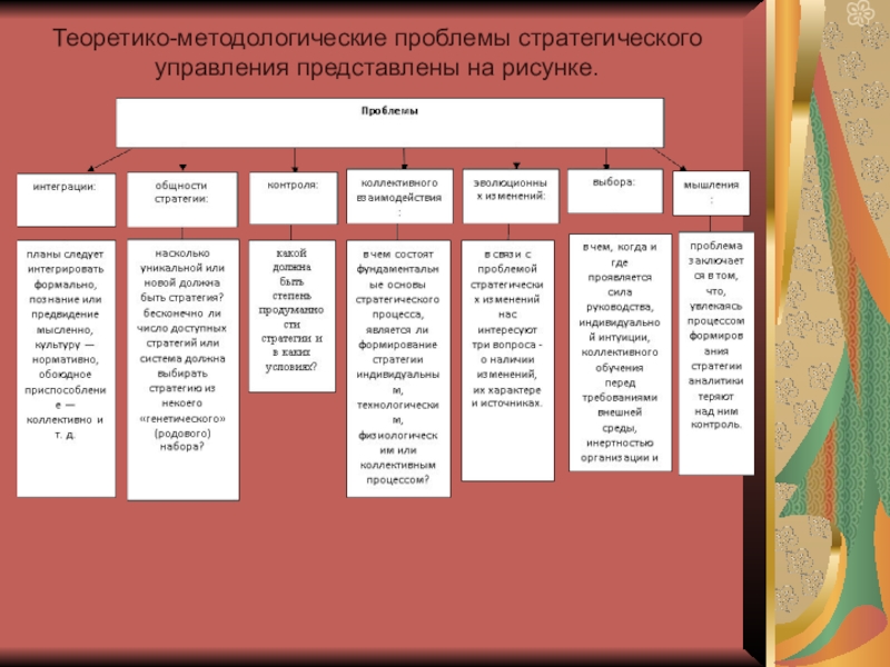 Слайд 37Теоретико-методологические проблемы стратегического управления представлены на рисунке.