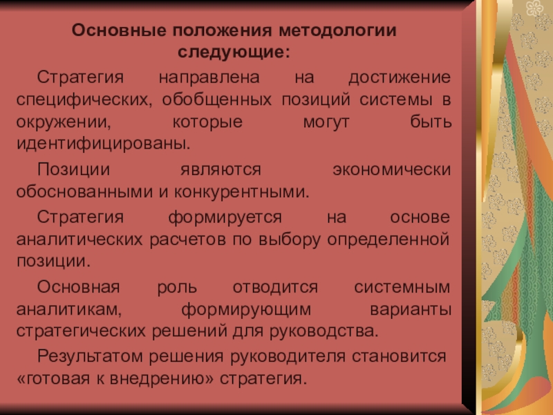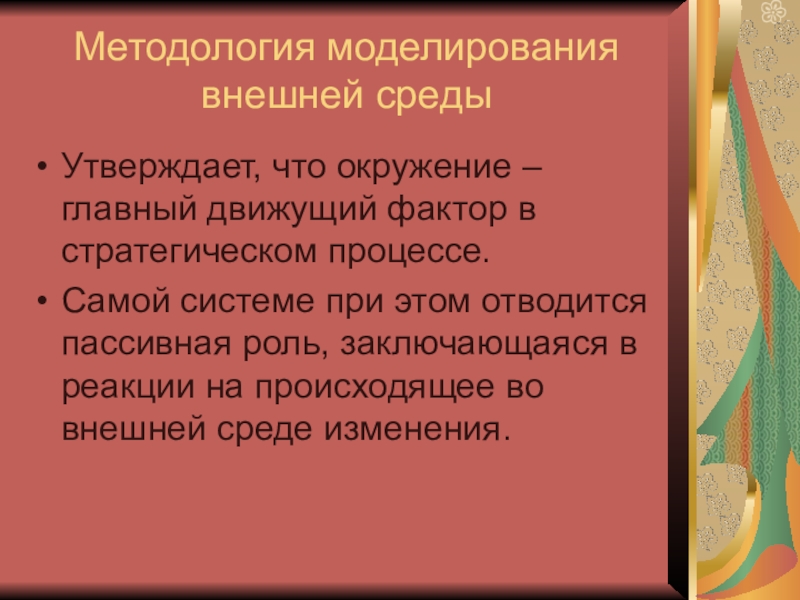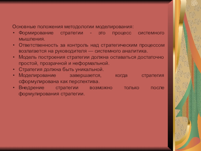 Слайд 9Методология стратегического моделирования определяет подход к построению стратегии, обеспечивающей соответствие (баланс)