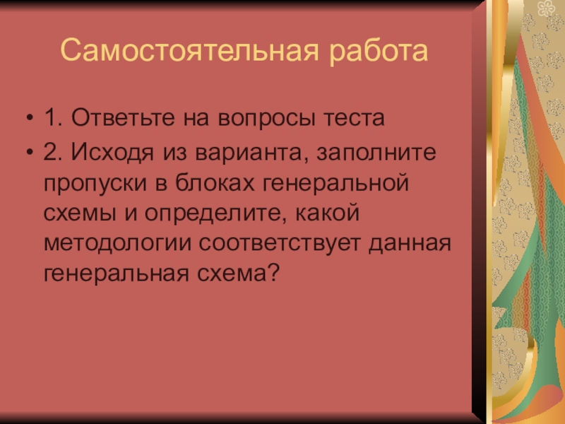 в блоках генеральной схемы и определите, какой методологии соответствует данная генеральная схема?