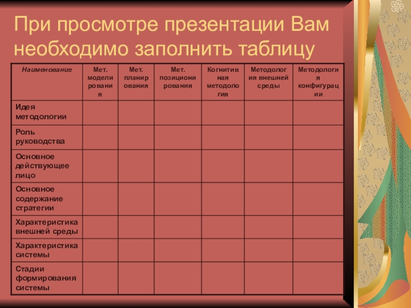 Слайд 7При просмотре презентации Вам необходимо заполнить таблицу
