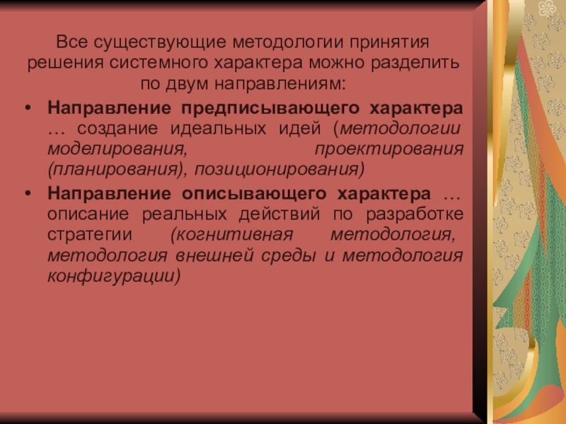 Слайд 6Все существующие методологии принятия решения системного характера можно разделить по двум