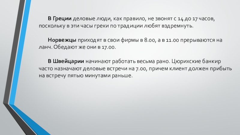 Слайд 21 В Греции деловые люди, как правило, не звонят с 14 до