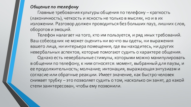 Главные требования культуры общения по телефону – краткость (лаконичность),
