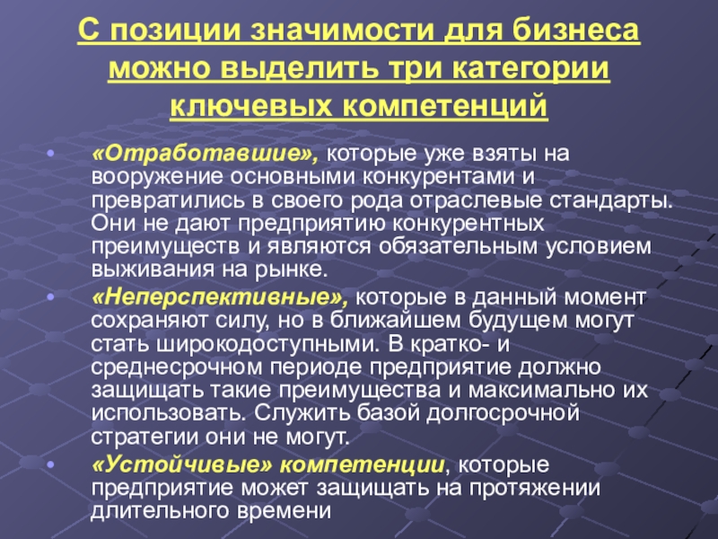 Слайд 25С позиции значимости для бизнеса можно выделить три категории ключевых компетенций
