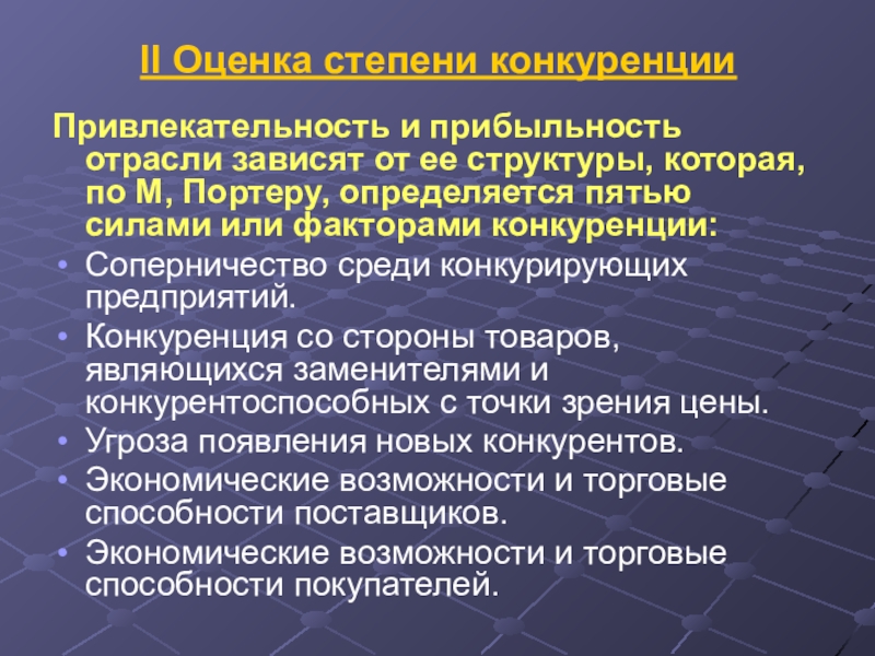 структуры, которая, по М, Портеру, определяется пятью силами или факторами конкуренции: