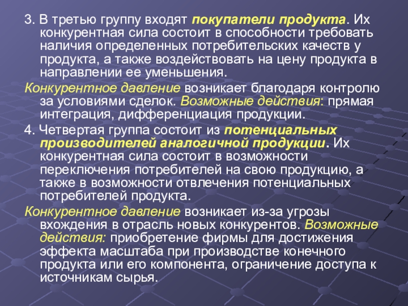 Слайд 133. В третью группу входят покупатели продукта. Их конкурентная сила состоит