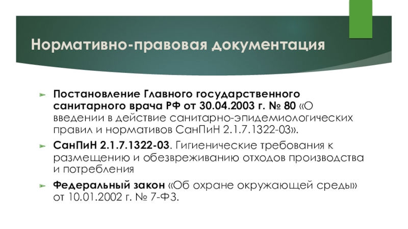 СанПиН 2.1.7.1322-03. Гигиенические требования к размещению и обезвреживанию отходов производства и потребления
