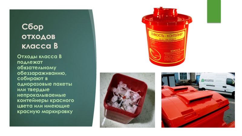 Слайд 21Сбор отходов класса В