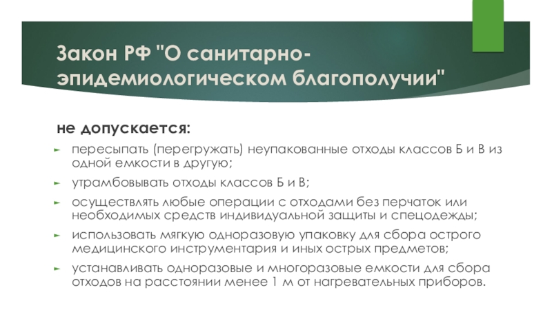 Слайд 29Закон РФ "О санитарно-эпидемиологическом благополучии"