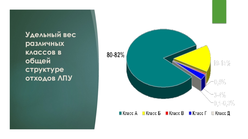 Слайд 15Удельный вес различных классов в общей структуре отходов ЛПУ