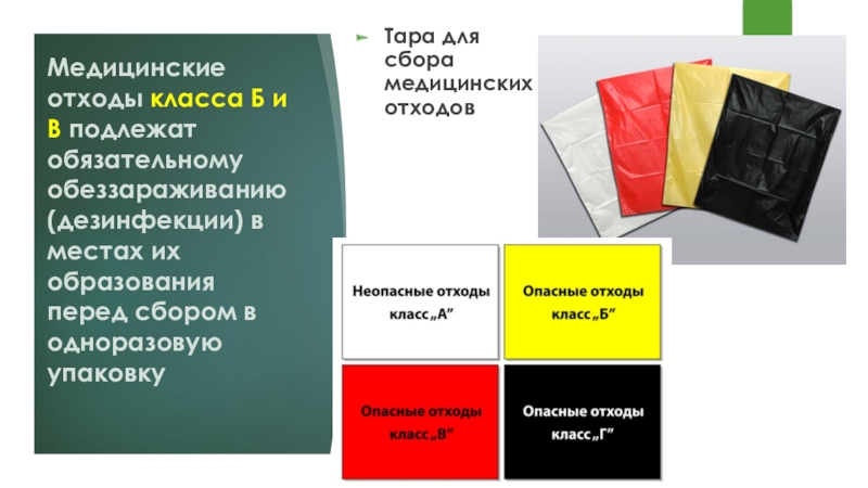Слайд 25Тара для сбора медицинских отходов