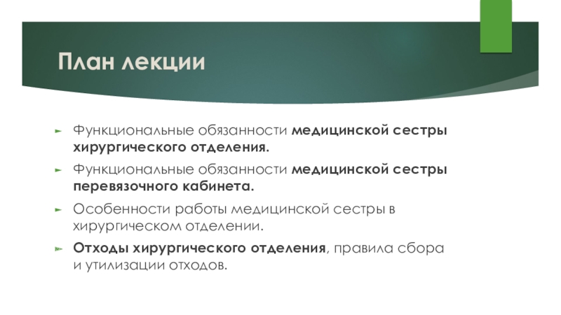 Особенности работы медицинской сестры в хирургическом отделении.
