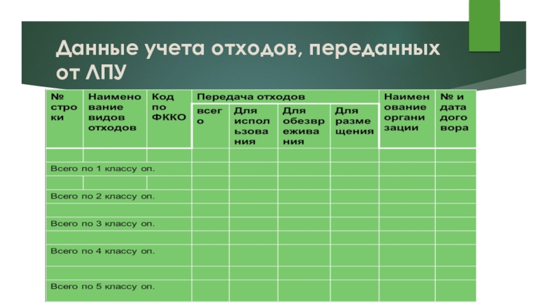 Слайд 33Данные учета отходов, переданных от ЛПУ