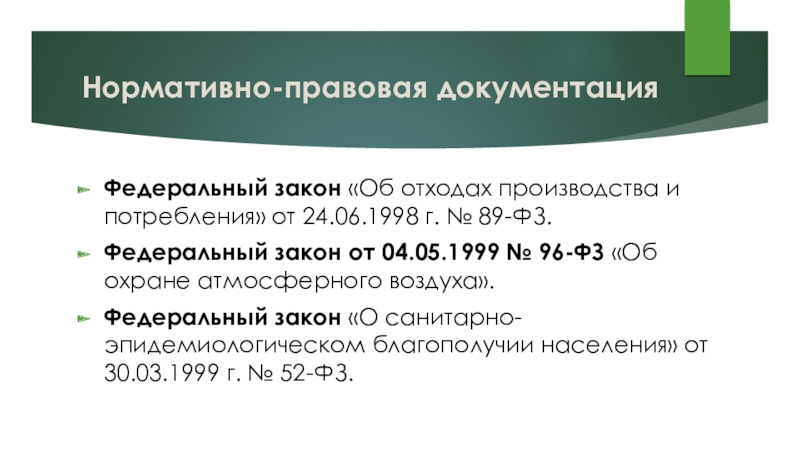 Федеральный закон «Об охране окружающей среды» от 10.01.2002 г. № 7-ФЗ.