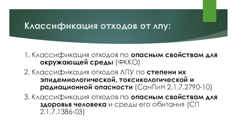 Слайд 13Классификация отходов от лпу: