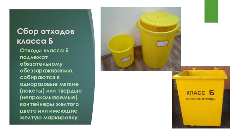 Слайд 19Сбор отходов класса Б