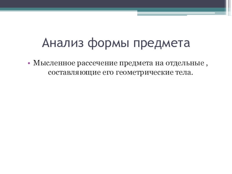 Анализ формы предметаМысленное рассечение предмета на отдельные , составляющие его геометрические тела.