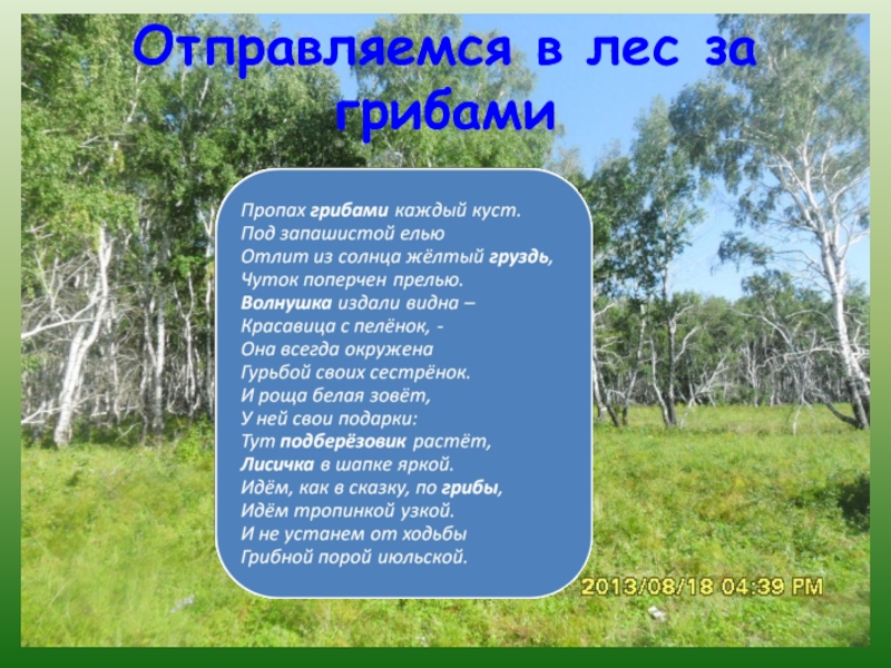 В тенистой глуши леса грибов меньше, чем на пятачках, освещенных солнцем: опушка леса, поляны, просеки, проселки.